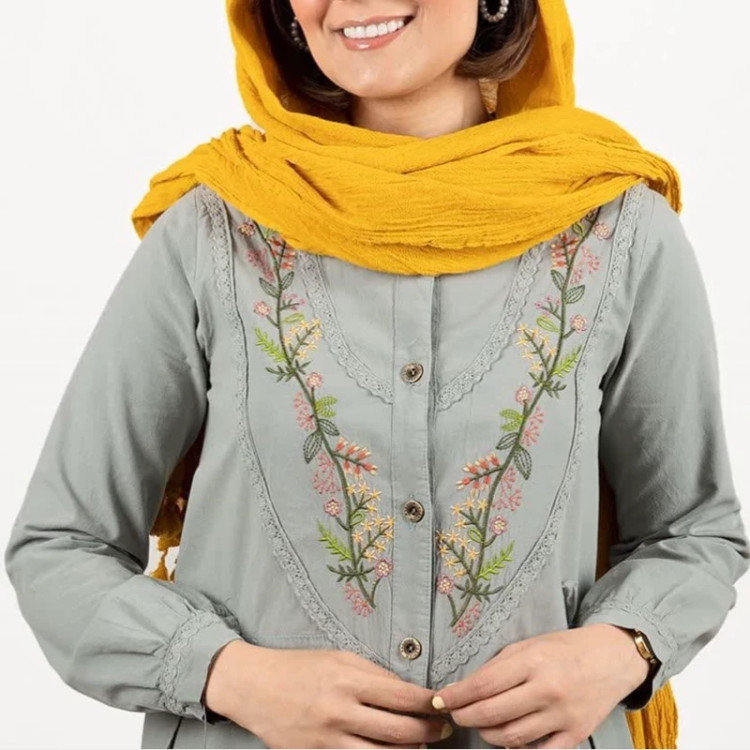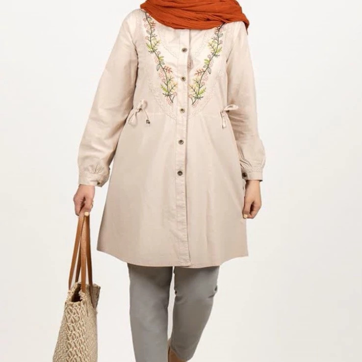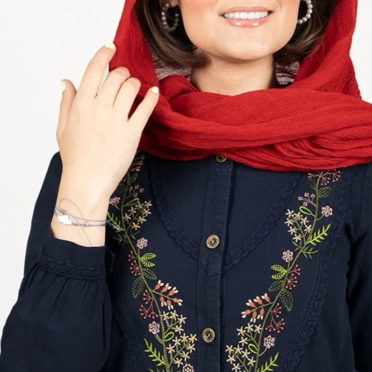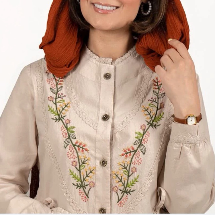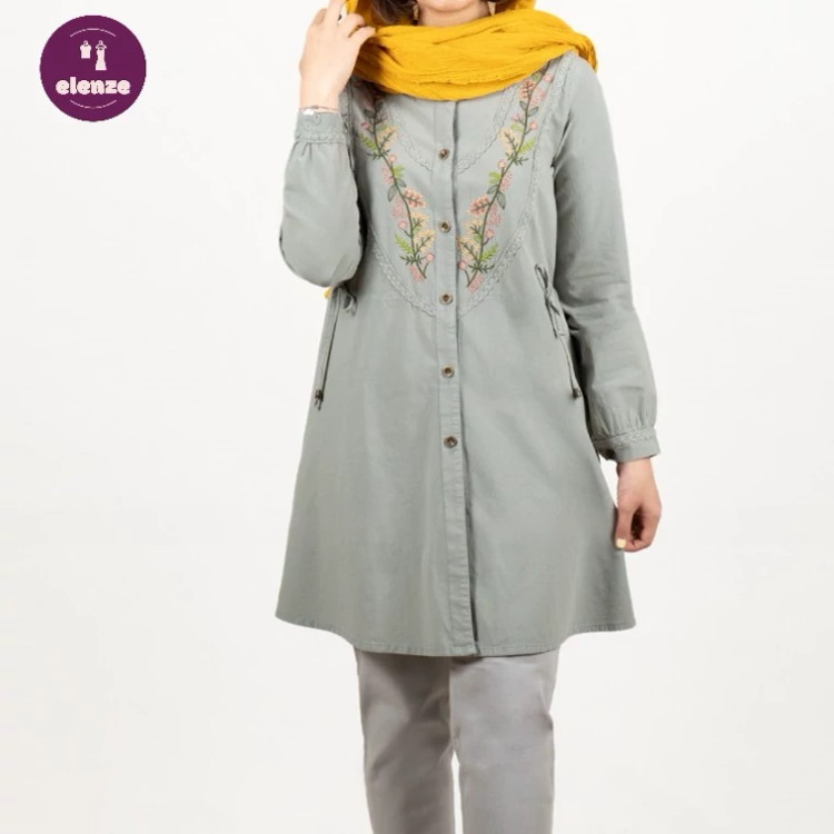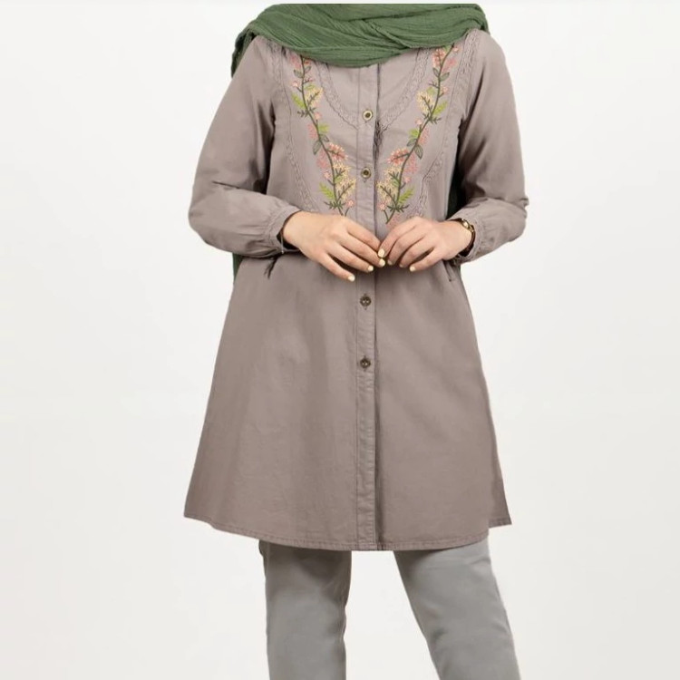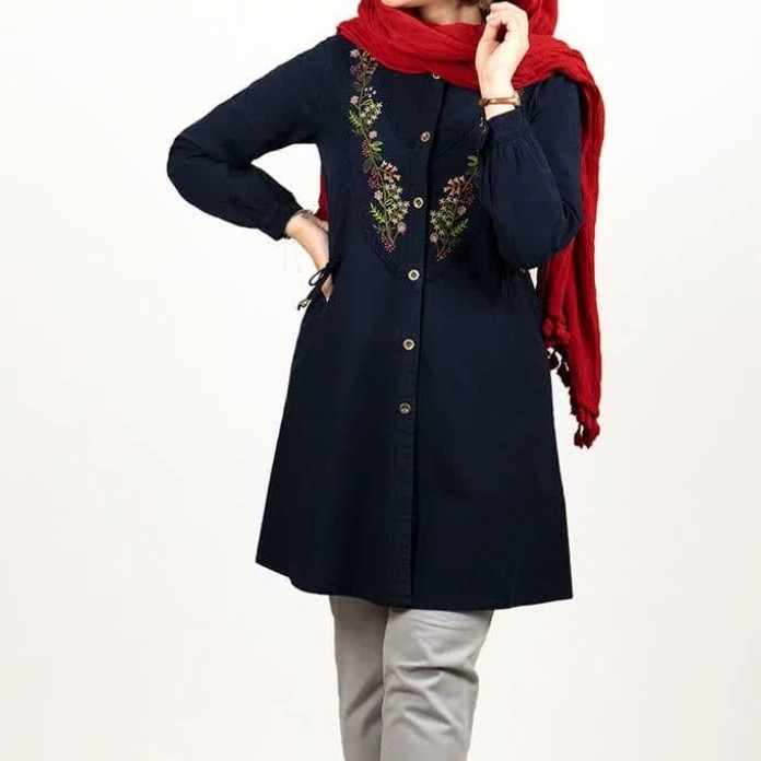 مانتو الیاف طبیعی گلدوزی اسپرت دانشجویی مدل دیبا