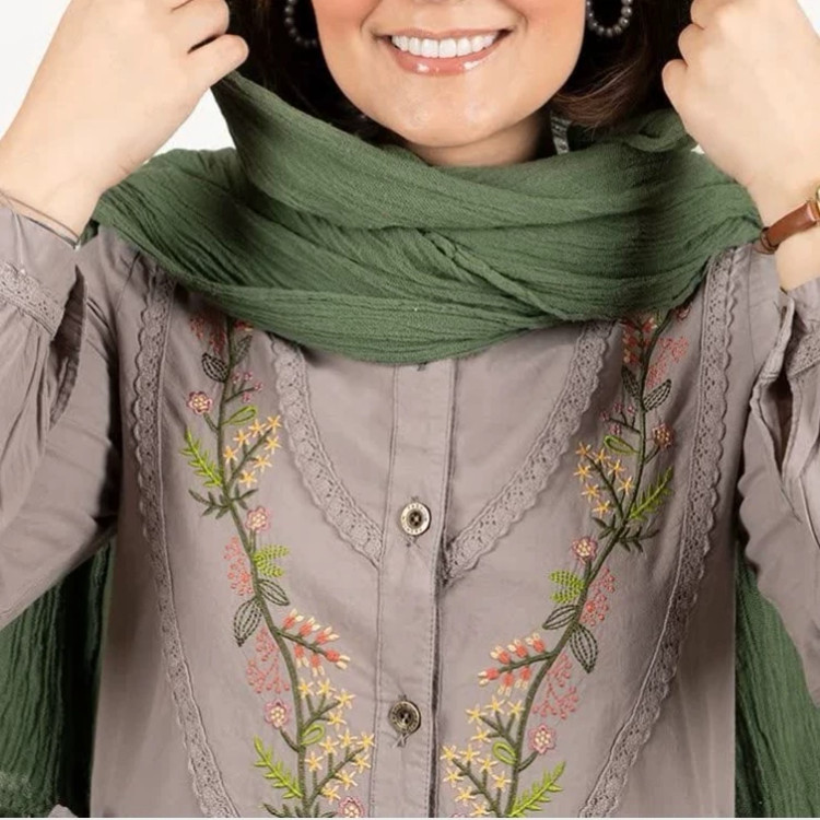 مانتو اسپرت دانشجویی مدل دیبا الیاف طبیعی گلدوزی شده رنگ سرمه ای، سبز، کرم و طوسی بدون آبرفت پنج سایز قواره کارها متفاوته. جهت اطمینان از سایز درست، حتماً عرض سینه یکی از مانتوهای خودتون رو اندازه بگیرید و ضربدر دو کنید تا دور سینه به دست بیاد، سپس با جدول راهنمای سایز در عکس آخر مقایسه کنید. نحوه شستشو: به صورت پشت و رو داخل ماشین لباسشویی بیندازید و با آب سرد بشویید. برای شستشو از شویندههای آنزیمدار استفاده نکنید. خشککن و اتوی ملایم آسیبی به لباس نمیزند. اتو را مستقیم روی قسمتهای چاپی نگذارید.
