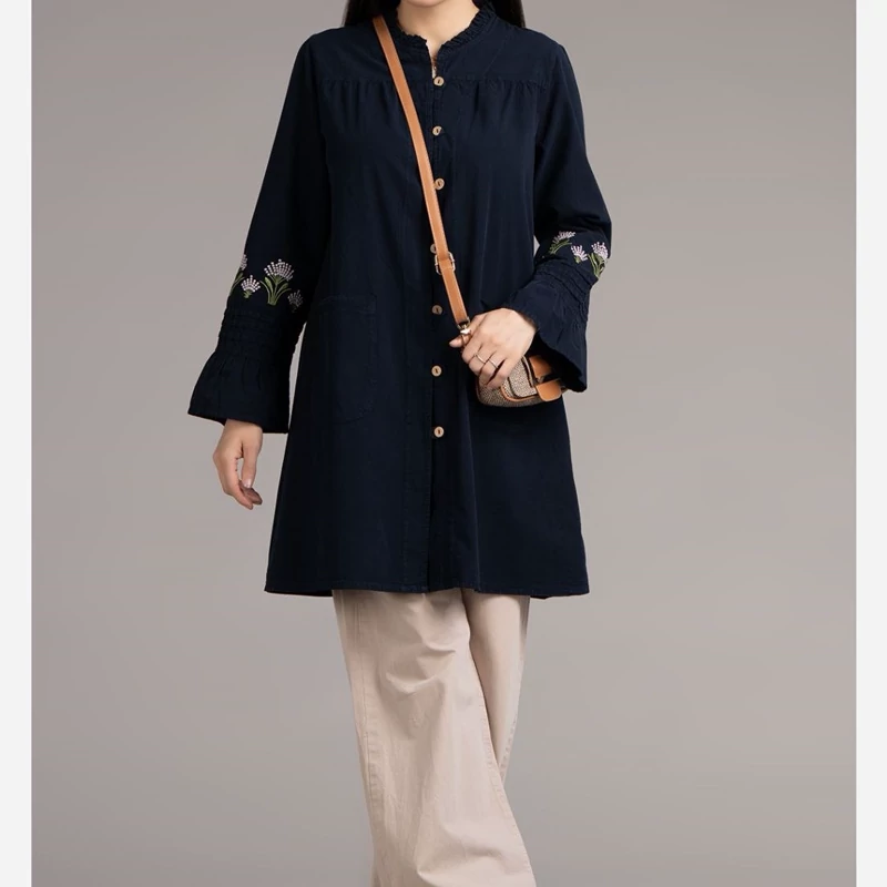 مانتو دانشجویی اسپرت الیاف طبیعی گلدوزی مدل آیلین