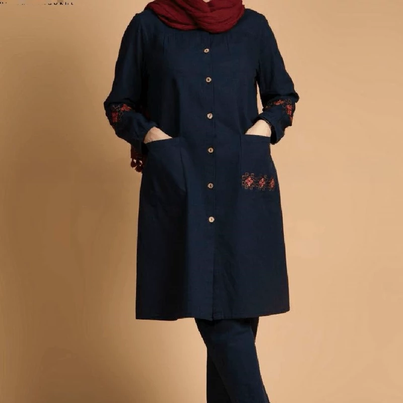 مانتو بلند دانشجویی اداری الیاف طبیعی مدل کیمیا