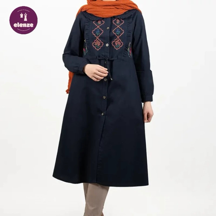 مانتو بلند زنانه دانشجویی گلدوزی شده مدل ترنج