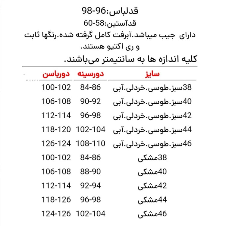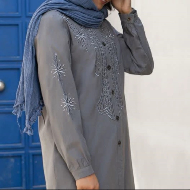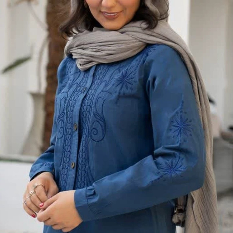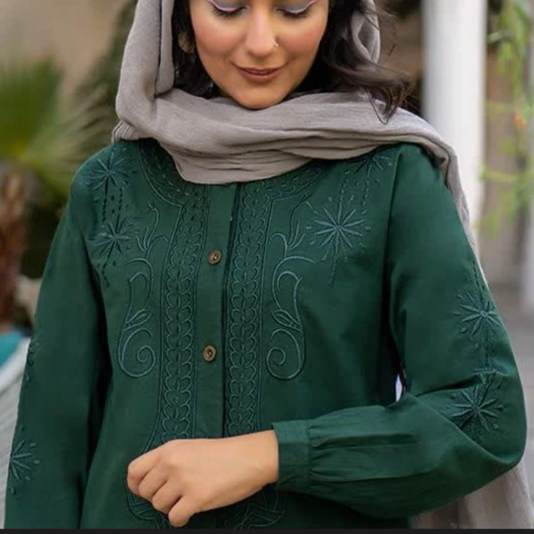 مانتو دکمه دار نخی الیاف طبیعی گلدوزی شده مدل ماهلین طوسی: سایز 38، 40 و 42 سبز: سایز 38 و 40 آبی: سایز 40 مشکی: سایز 42 بدون آبرفت مناسب محیطهای اداری و دانشگاه مانتو بلند ماهلین دوطرف جیب دارد. جدول راهنمای انتخاب سایز در عکس آخر موجود است. لطفا قبل از ثبت سفارش برای اطمینان از موجودی رنگ و سایز موردنظرتون، پیام دهید. نحوه شستشو: به صورت پشت و رو داخل ماشین لباسشویی بیندازید و با آب سرد بشویید. برای شستشو از شویندههای آنزیمدار استفاده نکنید. خشککن و اتوی ملایم آسیبی به لباس نمیزند. اتو را مستقیم روی قسمتهای چاپی نگذارید.