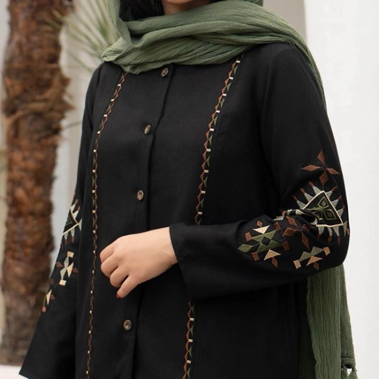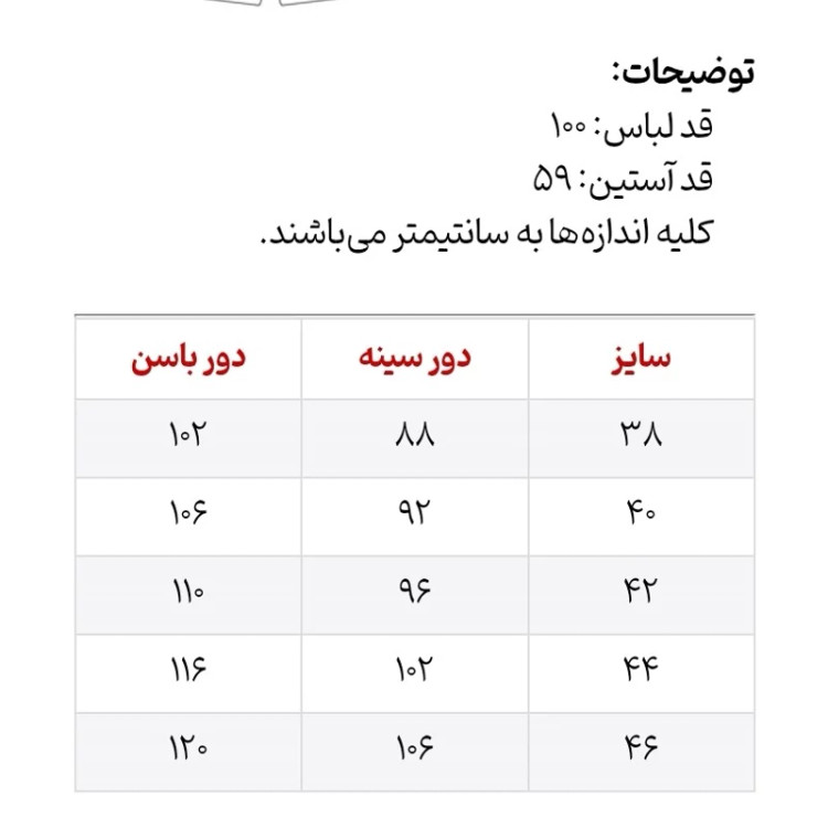 مانتو مشکی اداری بلند دکمه دار مدل آسنا مانتو آسنا دو طرف جیب دارد. جنس کرپ فاستونی در 5 سایز جهت اطمینان از سایز، حتماً عرض سینه یکی از مانتوهای خودتون رو اندازه بگیرید و ضربدر دو کنید، سپس با جدول راهنمای سایز در عکس آخر مقایسه کنید. نحوه شستشو: به صورت پشت و رو داخل ماشین لباسشویی بیندازید و با آب سرد بشویید. برای شستشو از شویندههای آنزیمدار استفاده نکنید. خشککن و اتوی ملایم آسیبی به لباس نمیزند. اتو را مستقیم روی قسمتهای چاپی نگذارید.