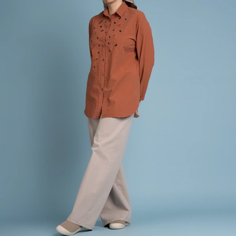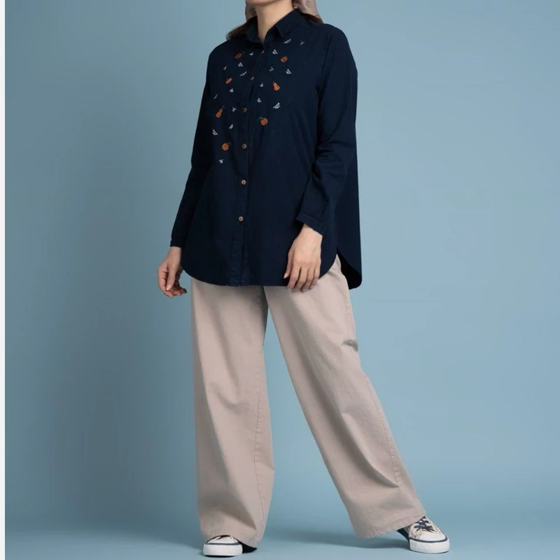 مانتو زنانه کوتاه نخی الیاف طبیعی سایز بزرگ مدل آتریسا رنگ سرمهای: سایز 40، 42 و 44 رنگ بادامی: سایز 44 مانتو شومیزی گلدوزی شده طرح کدو حلوایی بدون آبرفت قد: 75-79 سانتیمتر قواره شومیز آتریسا بزرگ است. جهت اطمینان از سایز درست، حتماً عرض سینه یکی از مانتوهای خودتون را اندازه بگیرید و ضربدر دو کنید، سپس با جدول راهنمای سایز در عکس آخر مقایسه کنید. لطفا قبل از ثبت سفارش از موجودی سایز و رنگ موردنظرتون مطمئن شوید. نحوه شستشو: به صورت پشت و رو داخل ماشین لباسشویی بیندازید و با آب سرد بشویید. برای شستشو از شویندههای آنزیمدار استفاده نکنید. خشککن و اتوی ملایم آسیبی به لباس نمیزند. اتو را مستقیم روی قسمتهای چاپی نگذارید.