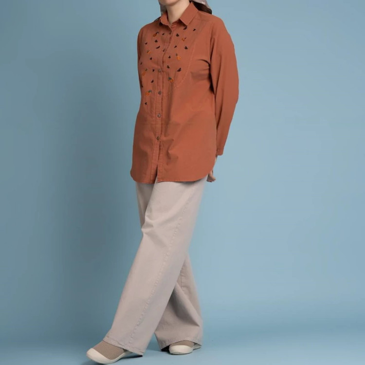 مانتو زنانه سایز بزرگ نخی گلدوزی شده آتریسا