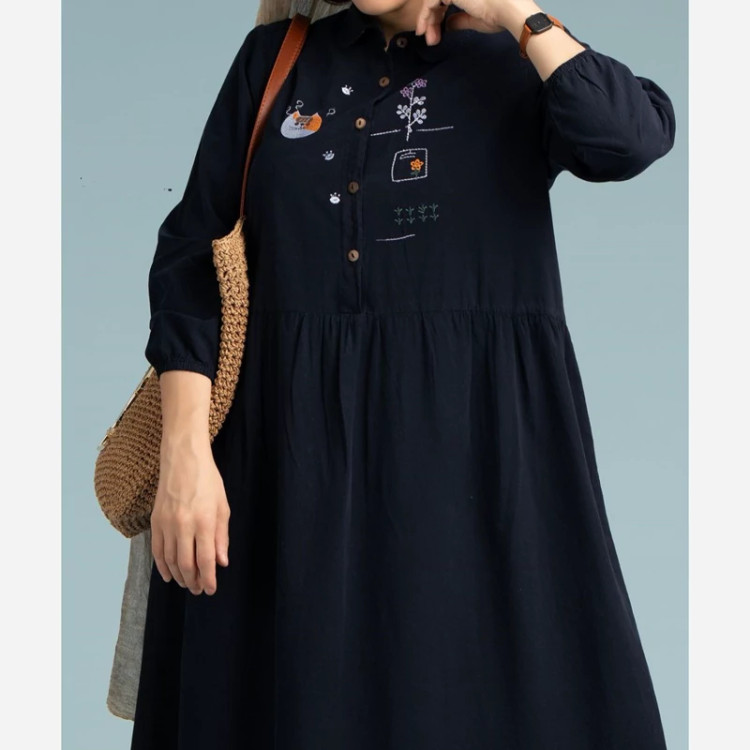 مانتو پیراهنی بلند مدل پریوش پیراهن ساحلی نخی زنانه در سه سایز کفتان سایز بزرگ مانتو تابستانه بلند با گلدوزی بدون آبرفت الیاف طبیعی پنبه (نخ رینگ) قد لباس ~130 قد آستین ~55 سایز 1 دورسینه ~110 سایز 2 دورسینه ~114 سایز 3 دورسینه ~118 جهت اطمینان از سایز، عرض سینه یکی از مانتوهای خودتون رو اندازه بگیرید و ضربدر دو کنید، سپس با راهنمای سایز مقایسه کنید. نحوه شستشو: به صورت پشت و رو داخل ماشین لباسشویی بیندازید و با آب سرد بشویید. برای شستشو از شویندههای آنزیمدار استفاده نکنید. خشککن و اتوی ملایم آسیبی به لباس نمیزند. اتو را مستقیم روی قسمتهای چاپی نگذارید.