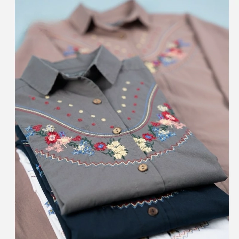 شومیز زنانه نخی الیاف طبیعی گلدوزی مدل گلناز