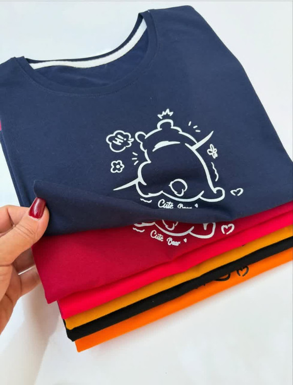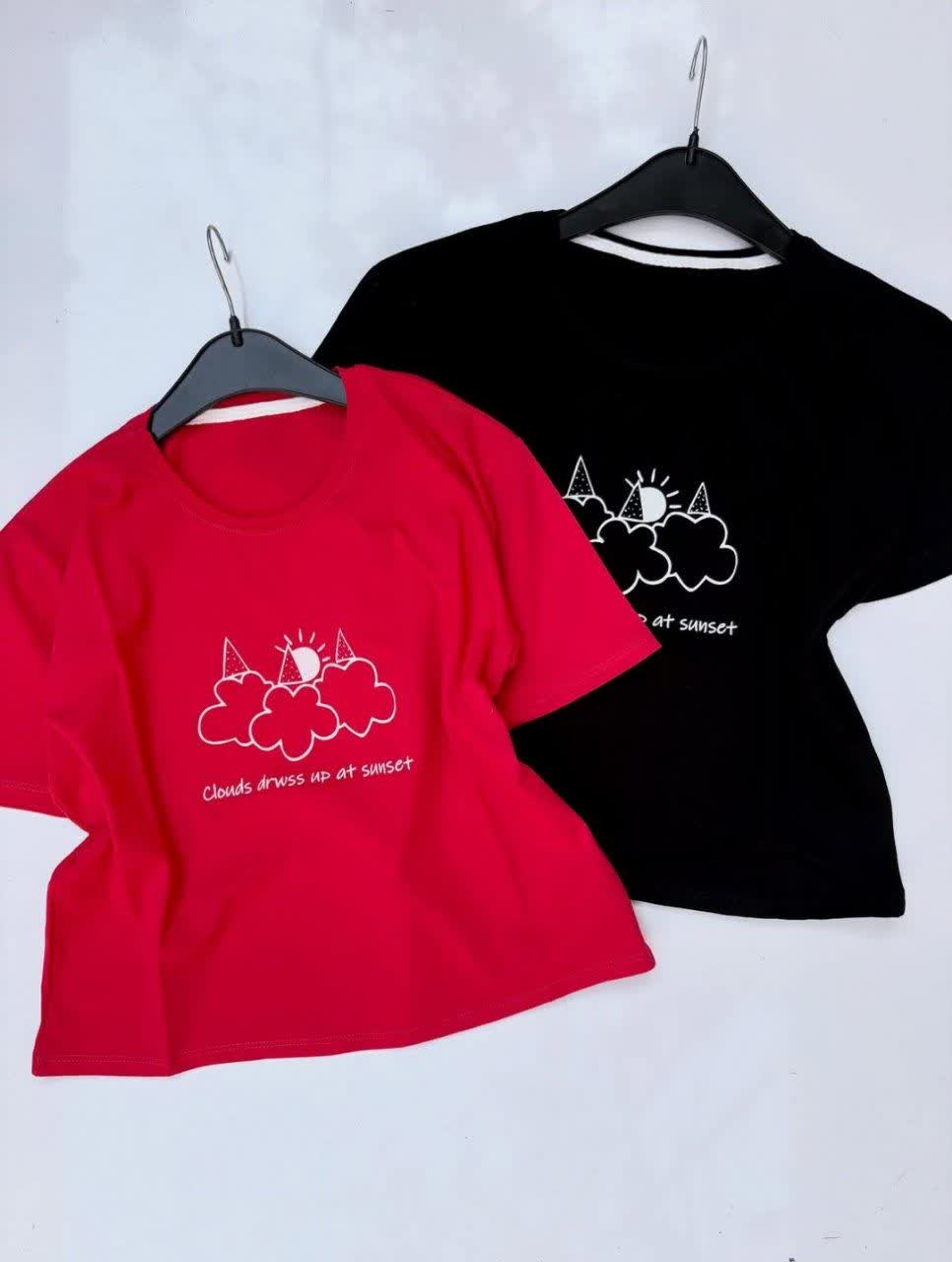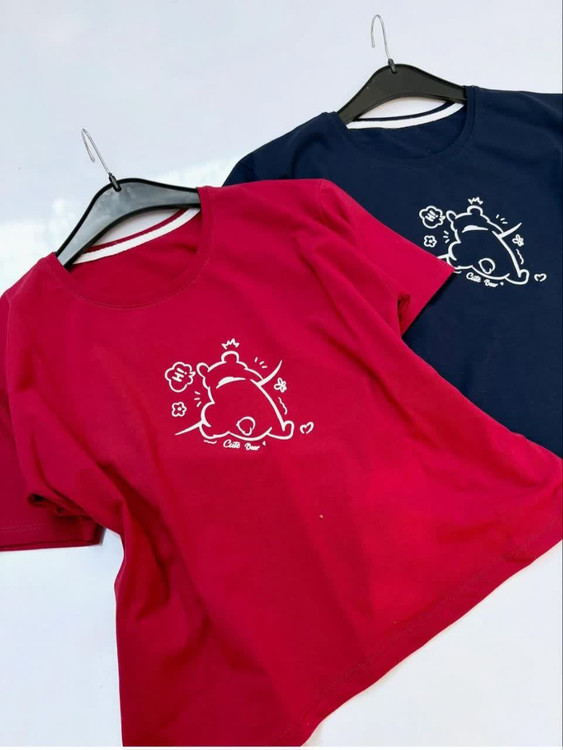 کراپ تیشرت زنانه نخ پنبه طرح پو