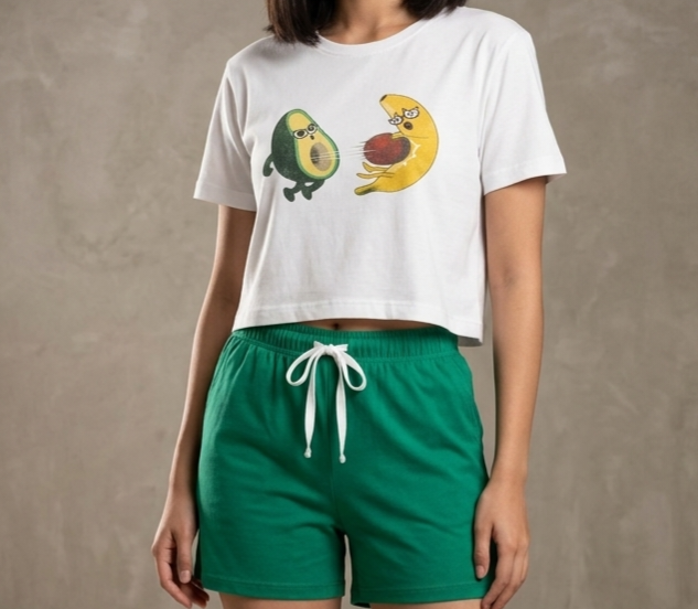 کراپ شورتک زنانه فانتزی طرح دار